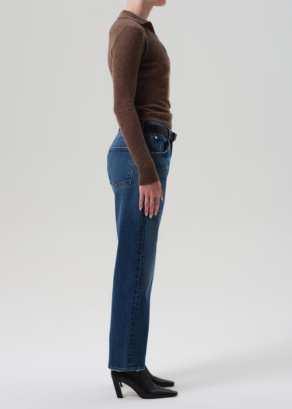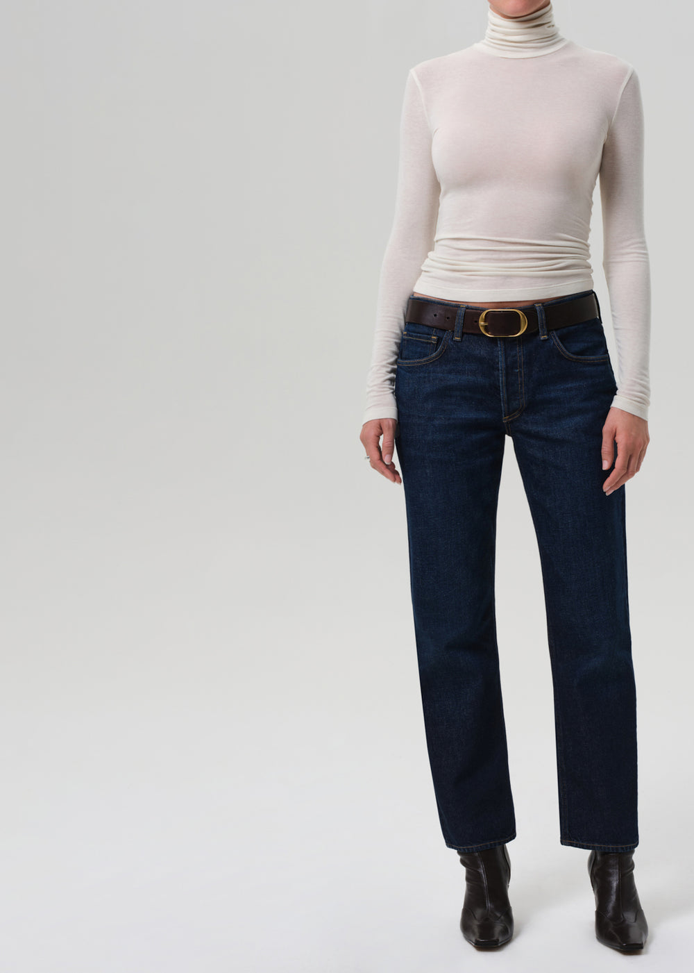 The Anissa reimagines the low-rise silhouette in a refined, straight-leg cut.