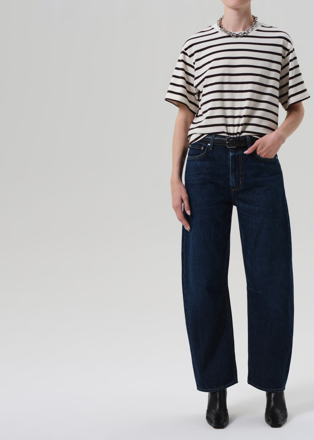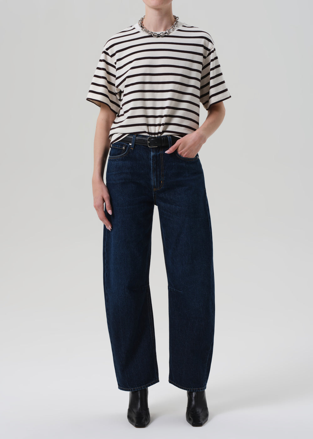 The Miro jean offers a slightly relaxed top block and tapered take on the barrel leg silhouette.