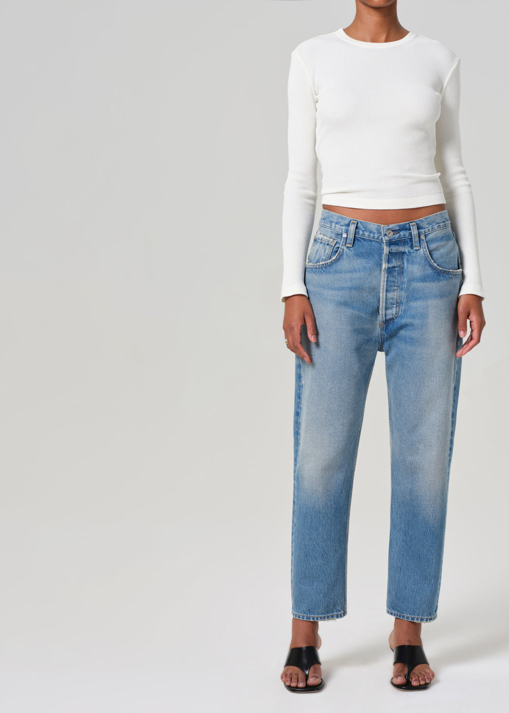Look: Relaxed vintage leg that slightly tapers down to the ankle