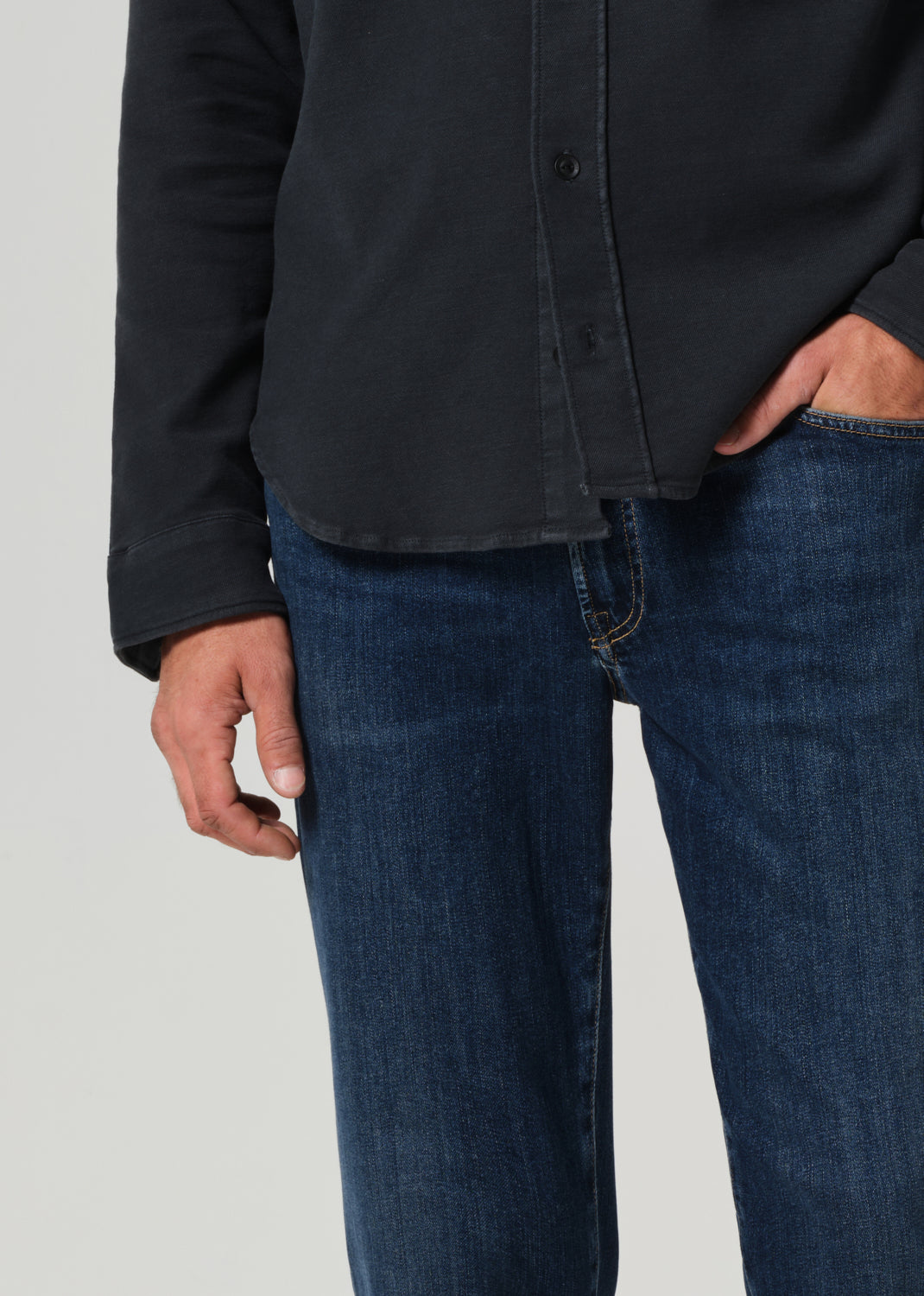 Looks Like: Dark indigo denim