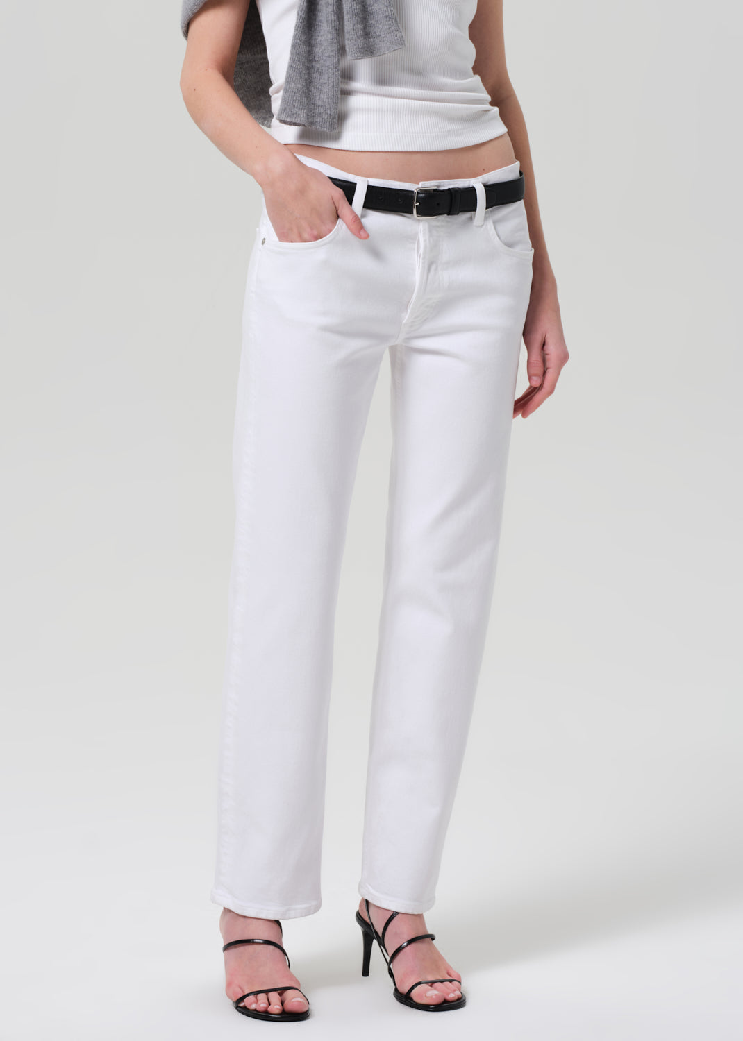 The Anissa is a quintessential wardrobe staple, blending vintage-inspired appeal with modern ease. Cut from Soft Stretch fabric—renowned for its comfort and denim’s timeless look—this pair features a low rise, zip fly, and straight-leg silhouette. Now in crisp white denim, it offers a fresh, versatile update, perfect for effortless styling. Pair it with anything from a relaxed tee to a tailored blouse for a look that transitions seamlessly from day to night.