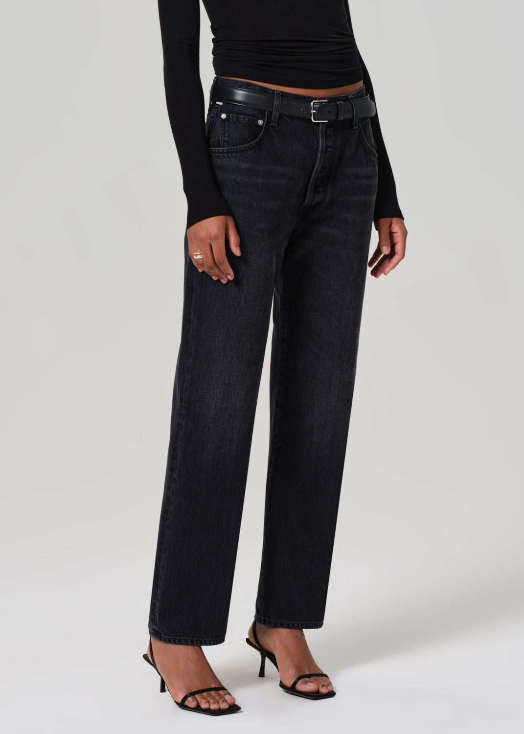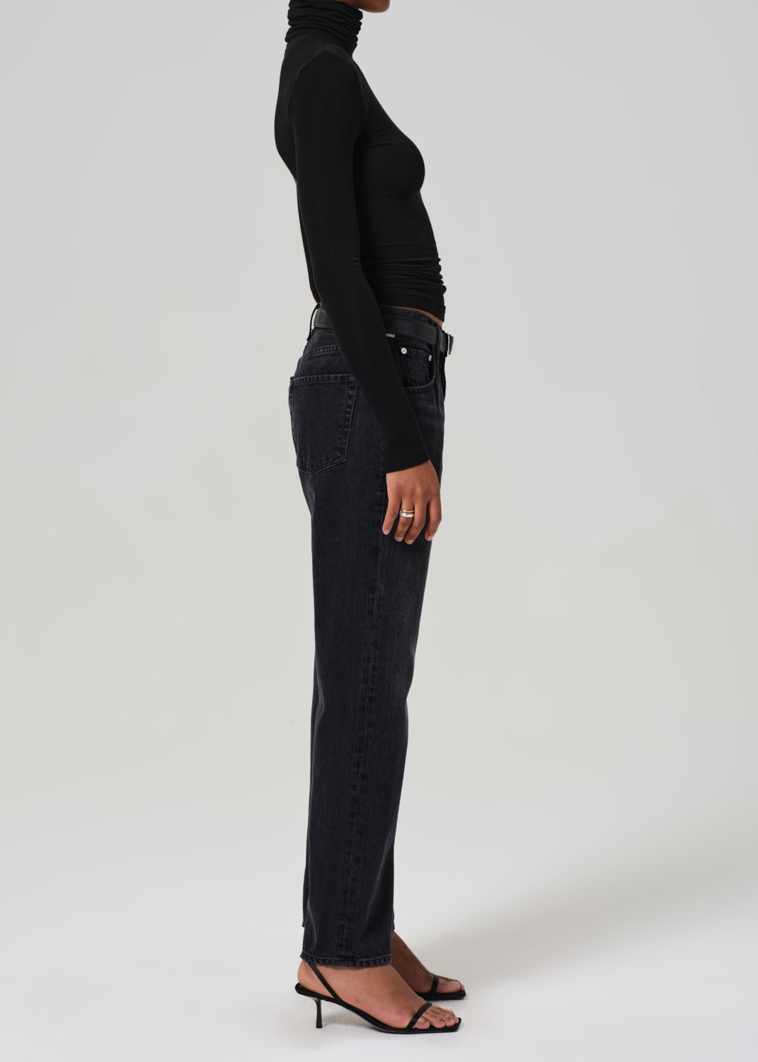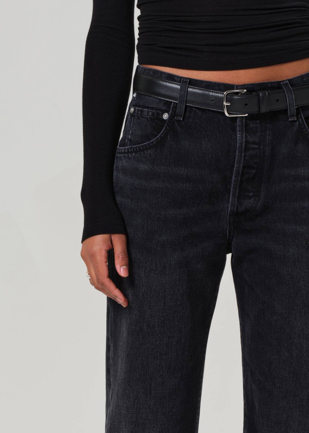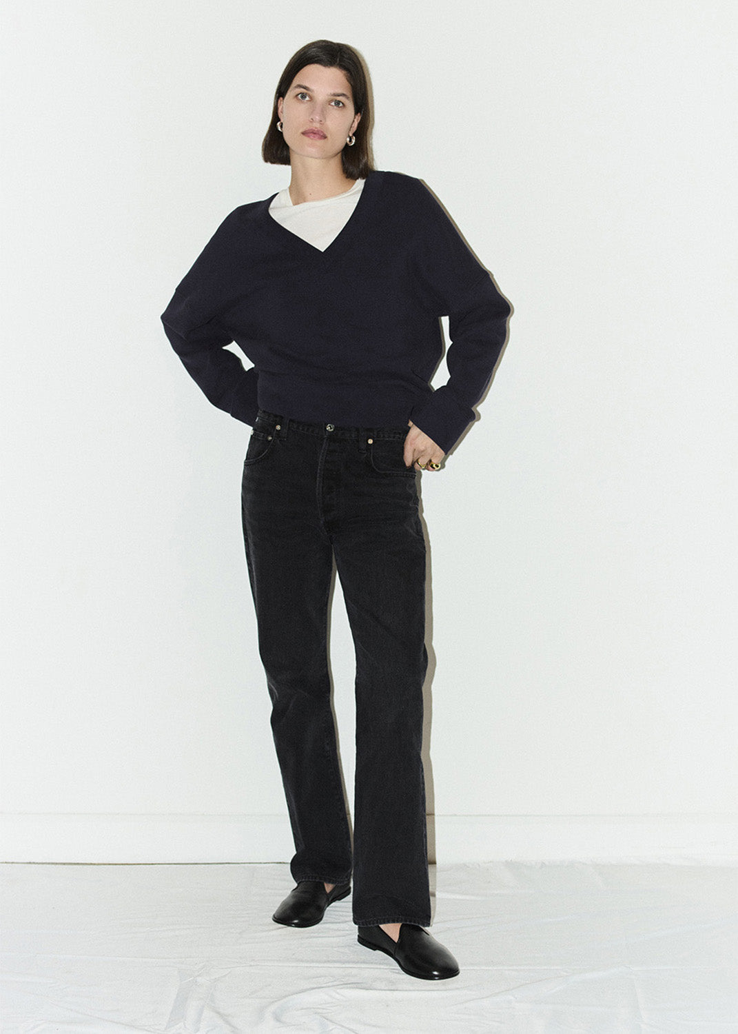 The ‘Baretta’ is a modern take on the classic straight leg, designed with a high rise and a relaxed shape through the hip and thigh. The ‘Andreas’ wash is a washed-out black with subtle whiskering, giving the rigid denim a softened, lived-in look. Crafted from regenerative cotton with a soft hand, it pairs just as well with oversized outerwear as it does with a sleek tank and boots.