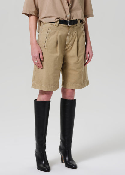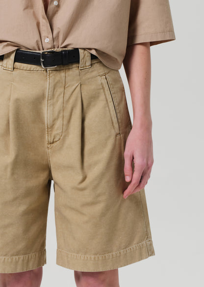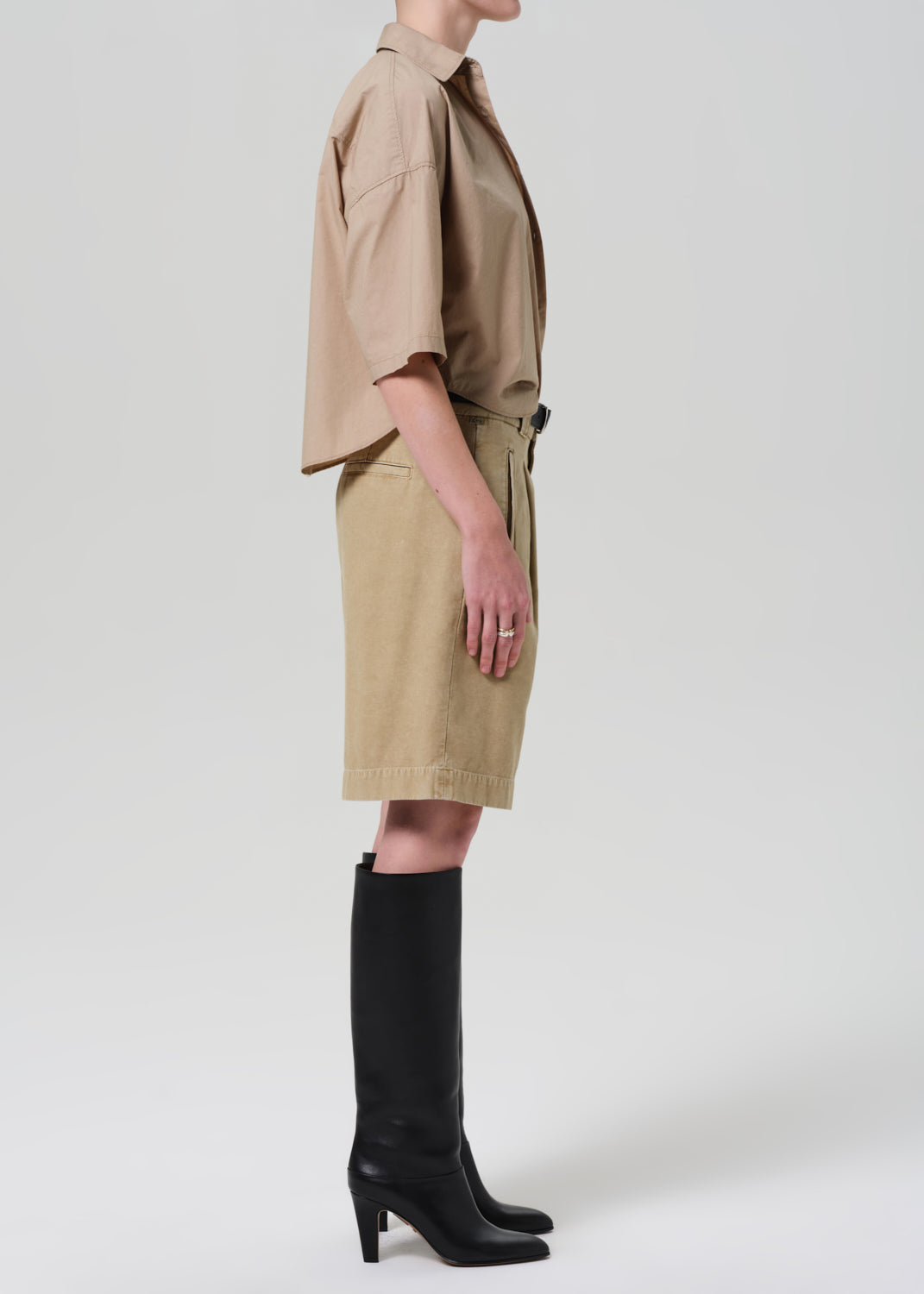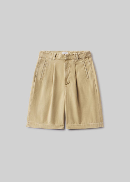 Looks Like: Medium beige short with front pleat detailing and trouser pockets