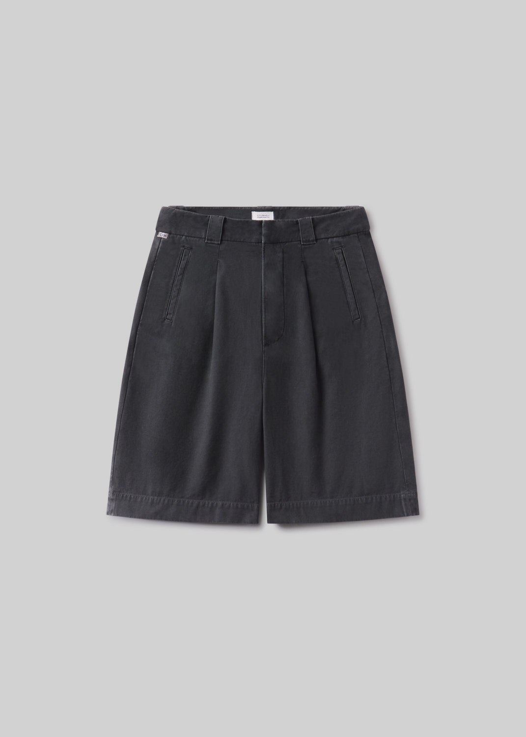 Looks Like: Washed black short with front pleat detailing and trouser pockets