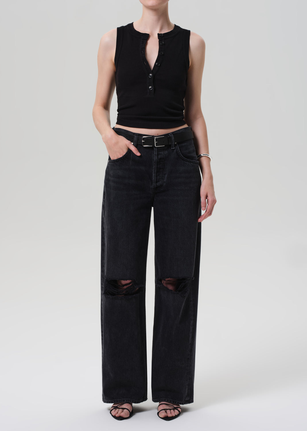 Looks Like: True black button front sleeveless tank