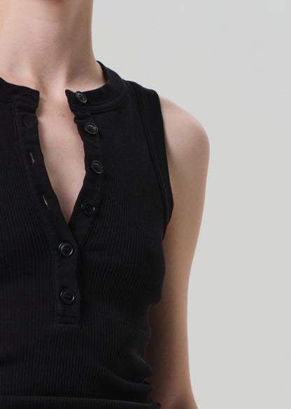 An elevated essential, the Caralyn Tank is crafted from ultra-soft, supportive rib made with regenerative cotton. The sleeveless silhouette features a clean button front and a slim fit that flatters with ease. Perfect layered under shirting or worn solo with denim.