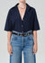 Frances Cropped Cape Button Up in Navy