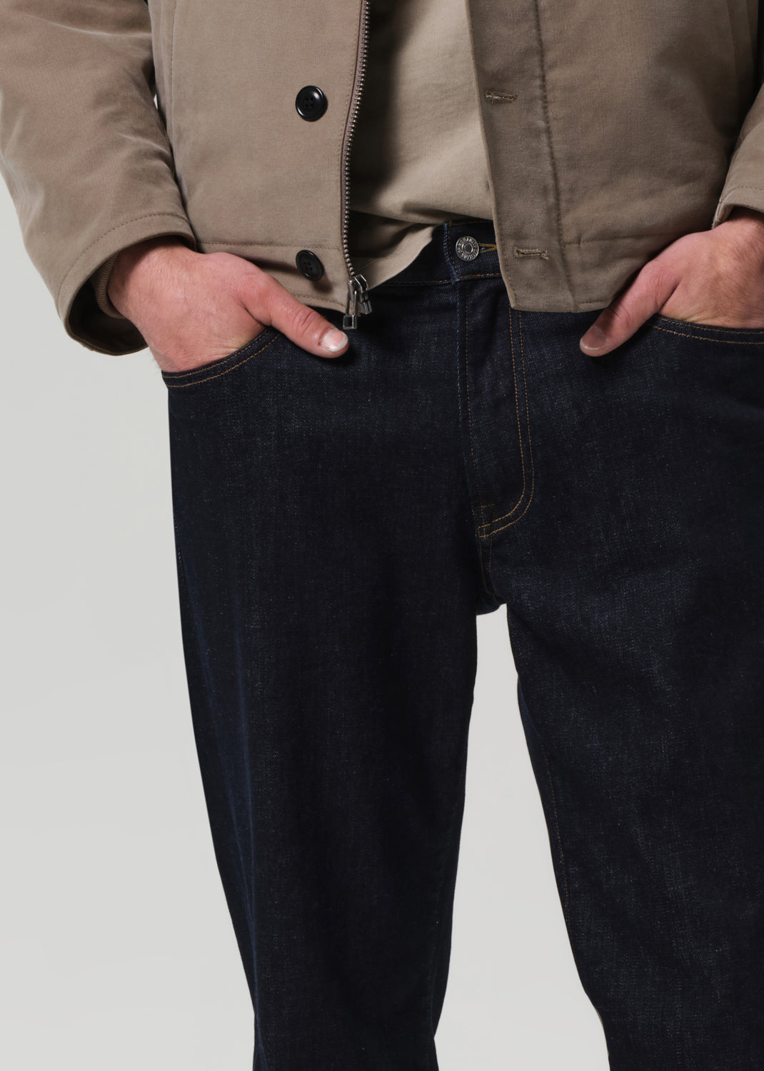 The Elijah is our most relaxed fit—cut straight through the hip and leg for all-day ease. Crafted from heavyweight comfort stretch denim with a soft hand, this pair is finished in a deep, clean indigo wash for a timeless, refined look. Made from regenerative cotton and recycled elastane.