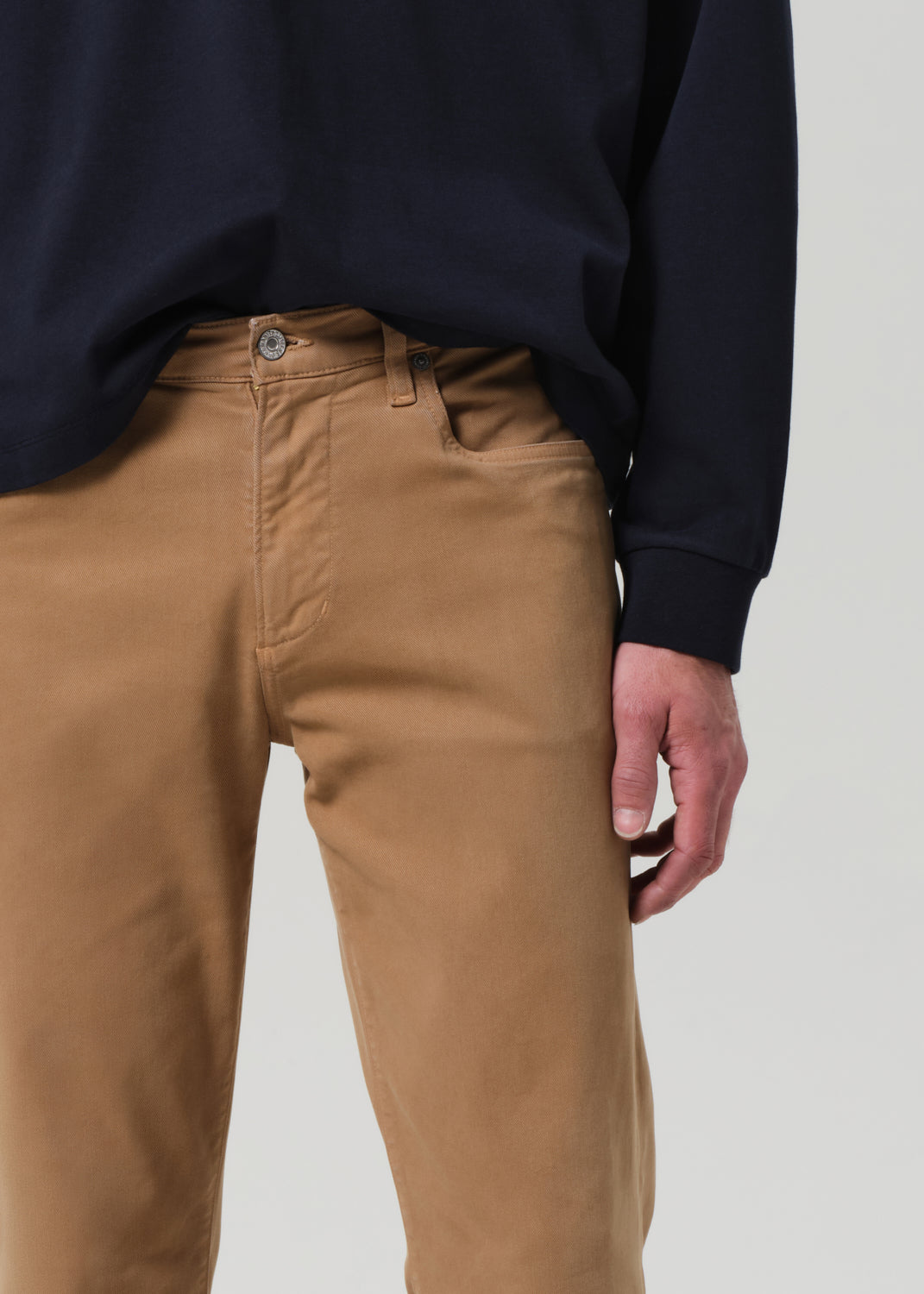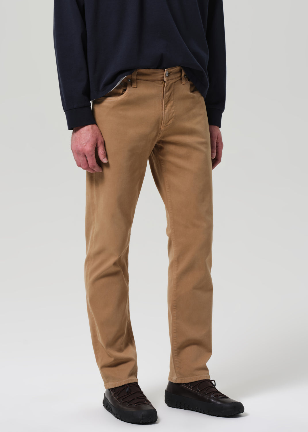 The Elijah is our most relaxed fit—cut straight through the hip and leg for comfort and ease. Crafted from our signature cashmere-touch twill, this pair offers a soft, elevated hand with a clean drape. Finished in a versatile tan for a refined approach to everyday dressing.