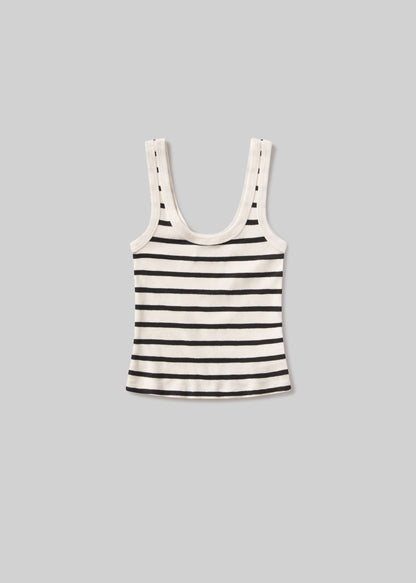 Looks Like: Navy and white striped scoop neck sleeveless tank top