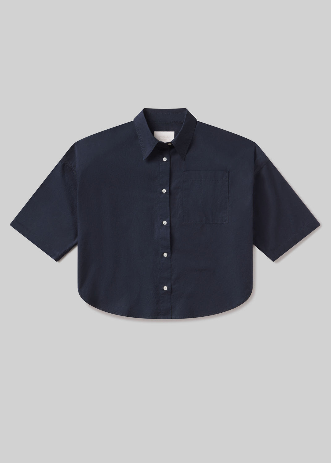 The ‘Frances’ is a fresh take on the classic button-up, crafted from ultra-lightweight cotton poplin with an airy, breathable feel. Designed with a cropped silhouette and subtle cape-inspired back detail, it blends structure with softness. Style it with high-rise denim or tailored shorts for a modern, effortless look.