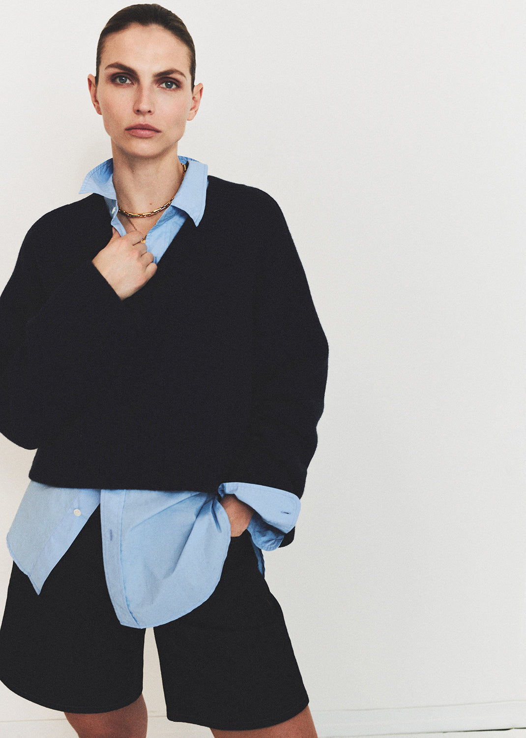 The Gazette Puzzle V-Neck is a refined knit crafted from a luxurious blend of natural wool and ultra-fine cashmere. Designed with a flattering v-neckline and long sleeves, it offers a breathable, lightweight feel with exceptional softness. A timeless layer—ideal with tailored trousers or worn casually with denim