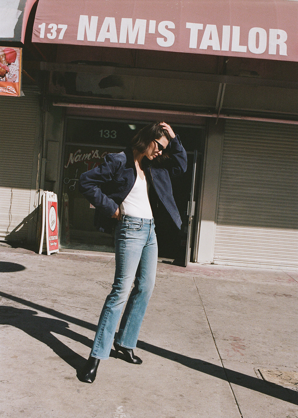 The Genova is a low-rise bootcut silhouette designed to elongate and flatter. Crafted from Japanese comfort stretch denim with a soft, broken-in hand, it offers structure with subtle flexibility. The Clairo wash—a medium indigo with gentle fading and whiskering—adds a timeless, lived-in finish. The versatile full-length leg pairs effortlessly with any kind of shoe—from boots to sneakers to heels.