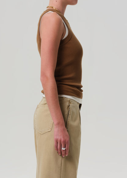 The Isabel Tank is a modern essential, cut in ultra-soft, supportive ribbed cotton with a close, flattering fit. Designed with a high neckline and clean finish, it’s ideal worn solo or layered under structured pieces. A polished base for elevated everyday styling.
