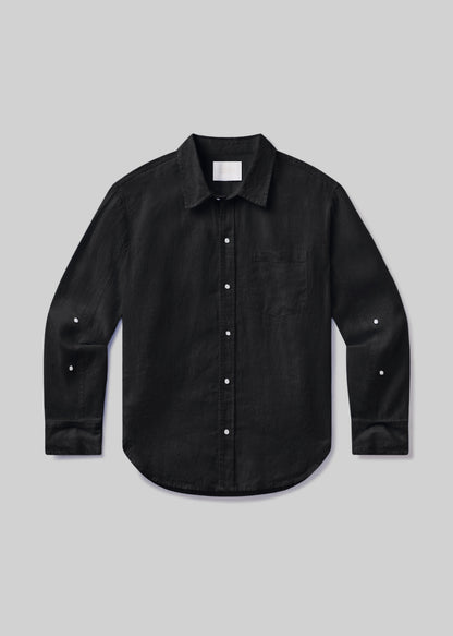 The Shrunken Kayla Shirt reimagines the classic button-down with a more tailored, cropped fit. Crafted from super lightweight linen, it’s ideal for layering over swim or pairing with your favorite travel pieces. The oversized silhouette is redefined with a high-low hem, adding a modern twist to this timeless staple. Versatile and effortlessly chic, it’s perfect for creating polished, laid-back looks year-round.