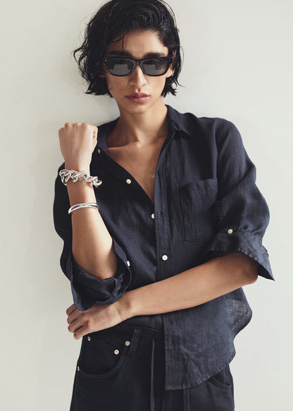 Our best-selling Kayla Shirt just got a long awaited update. This wardrobe must-have features a slightly more fitted silhouette, perfect for day to night. This classic fit still has the soft drop shoulder, the perfect drape throughout the body, offering the perfect dimension to a timeless staple.
