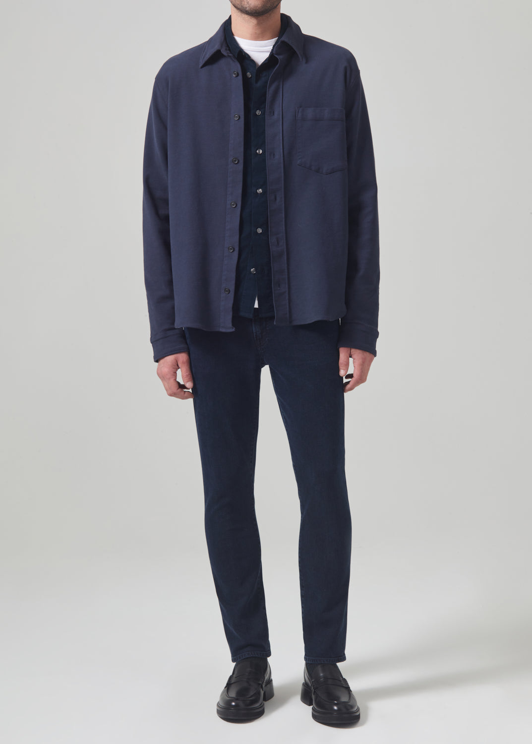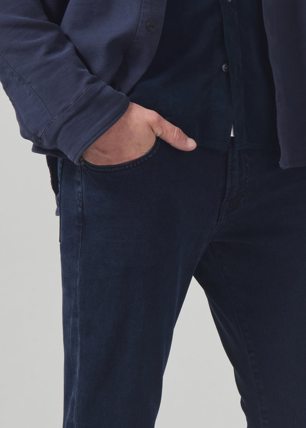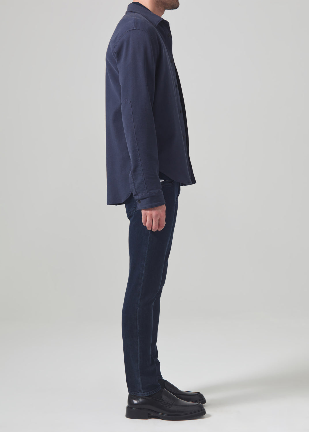The ‘London’ is a modern slim taper, designed to sit clean through the thigh and narrow below the knee for a streamlined fit. Crafted from our signature archive stretch denim with a soft, broken-in feel, Odessa is a clean dark indigo wash that works year-round—easy to dress up or down.