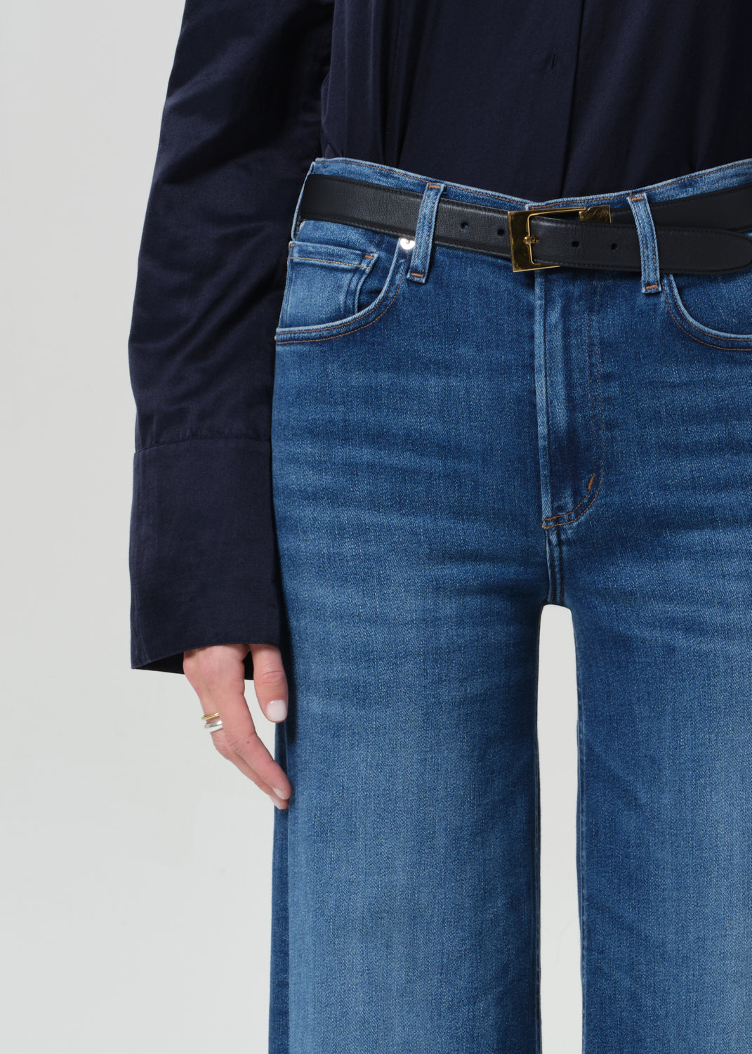 The Lyra is a vintage-inspired wide leg that sits high on the waist with a relaxed top block and full-length inseam. Crafted from soft stretch denim with a lightweight feel, Ambry is a versatile medium-dark indigo with subtle fading—ideal with everything from oversized knits to tailored shirting.