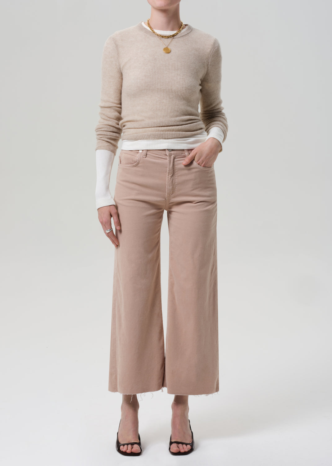 The Lyra is a vintage-inspired wide leg that sits high on the waist with a relaxed top block and cropped inseam for a voluminous, modern shape. Cut in soft stretch baby corduroy, Pale Stone offers a fresh, neutral take on texture—perfect with tonal layers or crisp shirting.