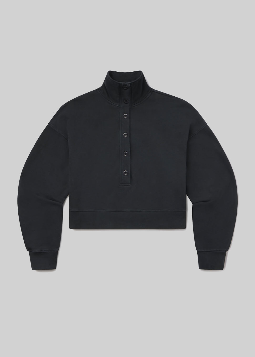 Looks Like: Dark grey funnel neck sweatshirt with button closure