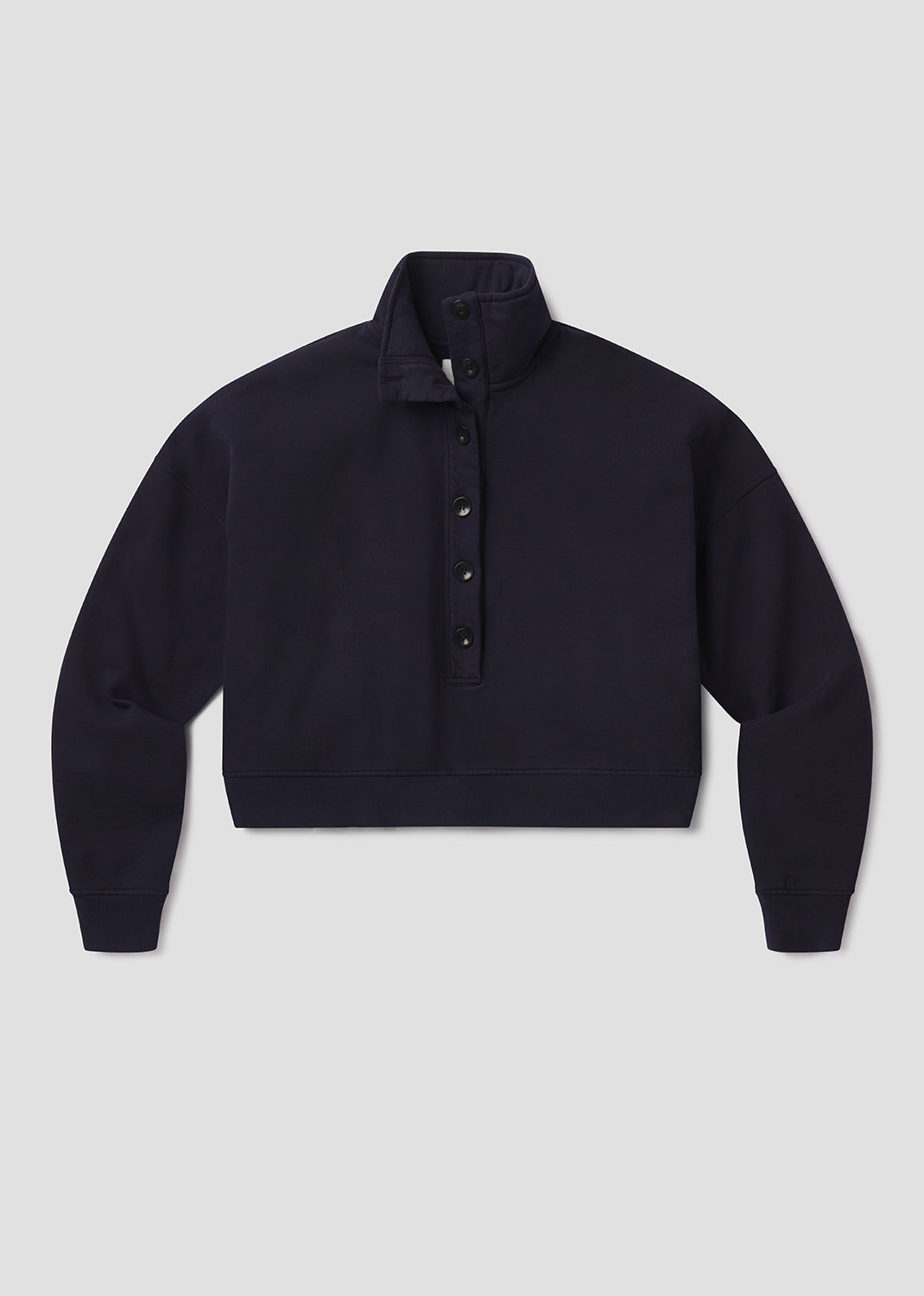 Looks Like: True navy funnel neck sweatshirt with button closure