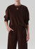 A low-slung relaxed jean crafted from rigid, non-stretch denim for a structured yet effortless feel. The silhouette tapers to the ankle, creating a clean, contemporary line. Dark brown denim with subtle black cheetah print detailing brings a refined, unexpected touch—perfect styled with minimal layers and sleek footwear for a polished, modern look.