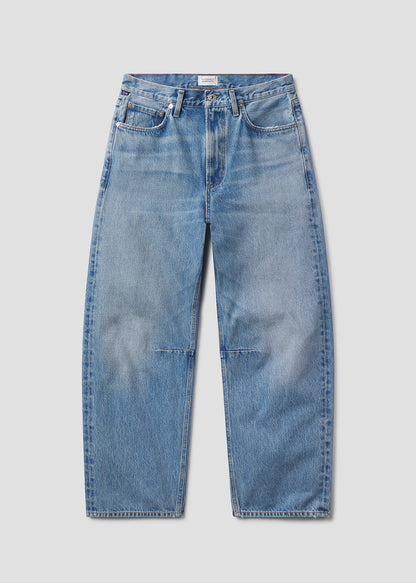 The ‘Miro’ offers a subtle take on the barrel silhouette, cut high at the waist with a relaxed shape that softly tapers to the ankle. Crafted from rigid regenerative cotton, the medium-to-light indigo wash is finished with authentic fading and whiskering for a naturally worn-in look. A modern essential—pair with soft knits, crisp shirting, and any shoe in your rotation.