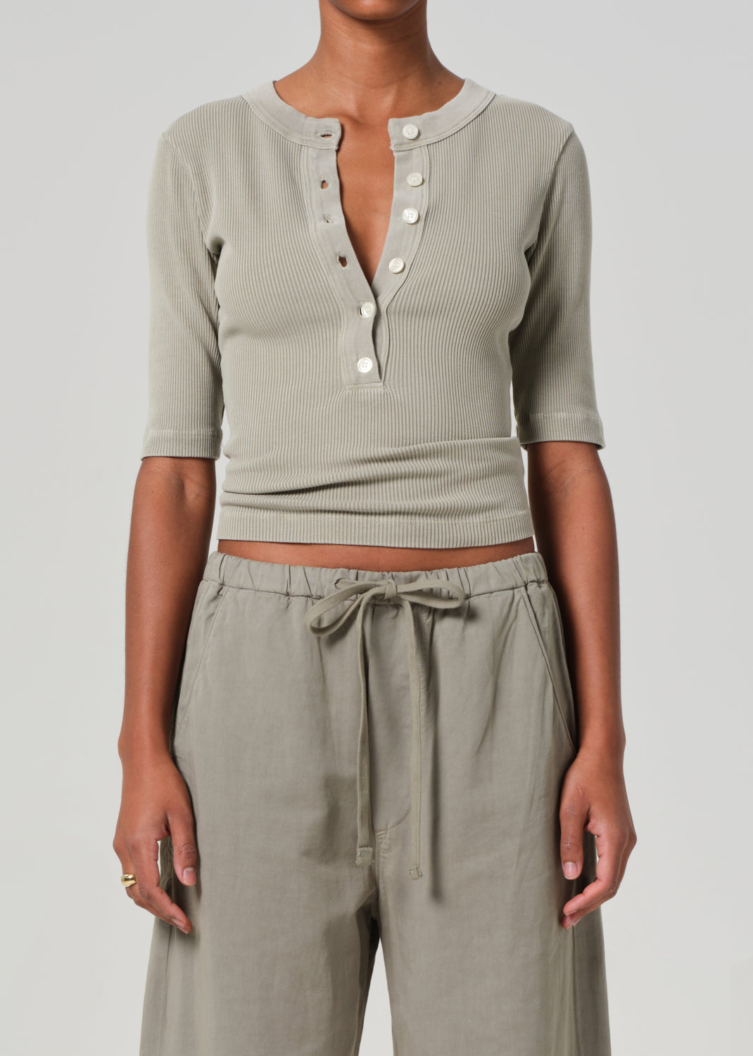 Designed from a form-fitting rib, this versatile henley can be worn fully buttoned or undone for a more relaxed look.