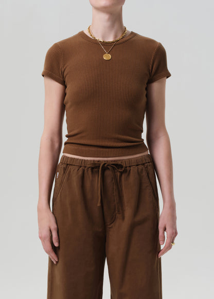 The ‘Nello’ Tee is a refined essential, crafted from a super soft sweater rib with just the right amount of stretch. Featuring a crew neckline and short sleeves, it offers a close fit that’s perfect for layering or wearing on its own.