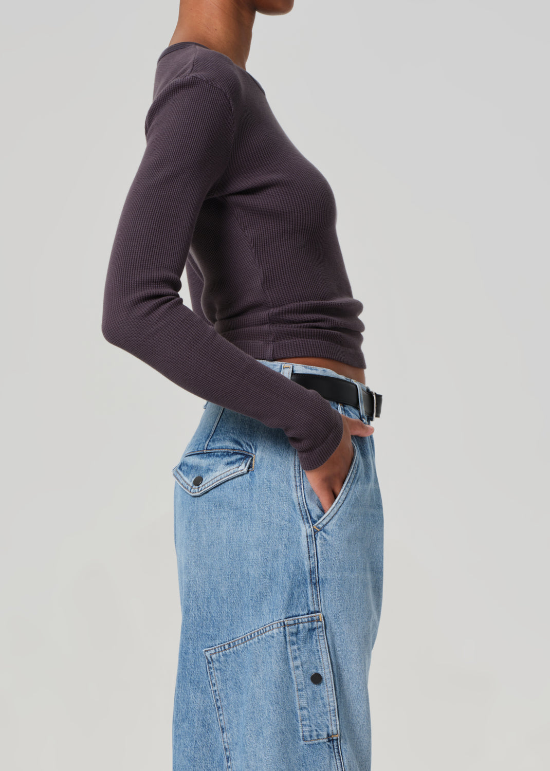 Feels Like: Midweight super soft cotton with waffle thermal texture