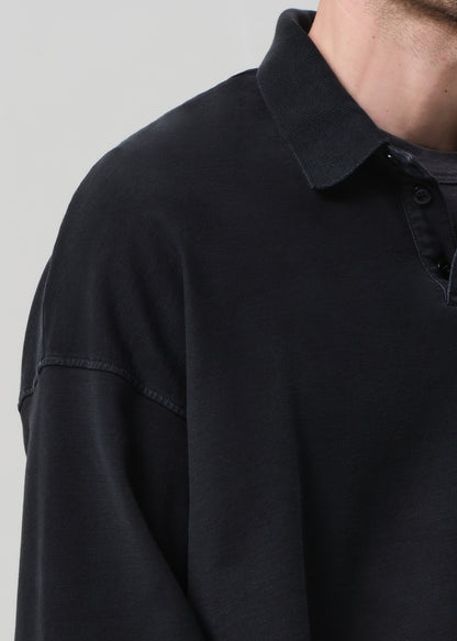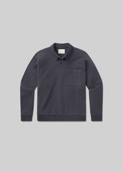 The ‘Rugby Polo’ is an elevated take on a casual staple, cut from soft French terry with added stretch for all-day comfort. Designed with a front pocket and subtle collar, the long sleeve silhouette delivers ease and polish in equal measure. Ideal on its own or layered under outerwear.