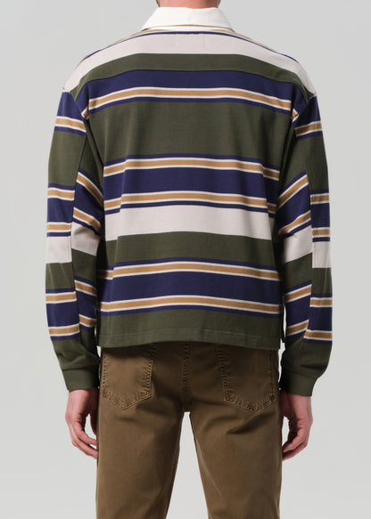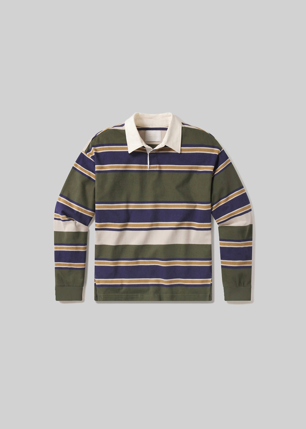 Looks Like: Multi-striped long sleeve polo rugby shirt