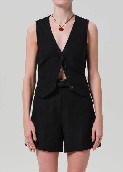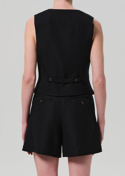 Mini Tailored Short Linen Twill in Black