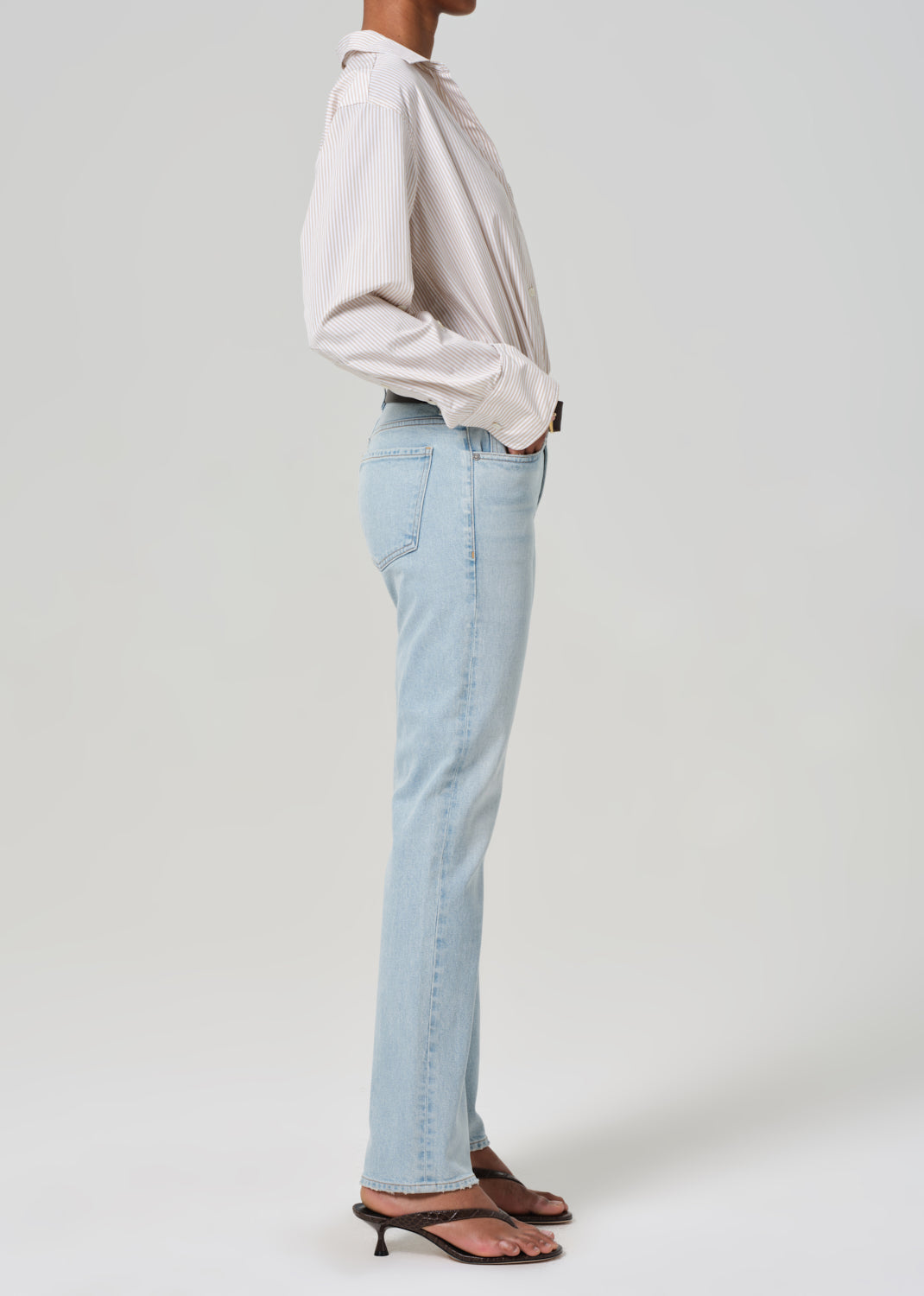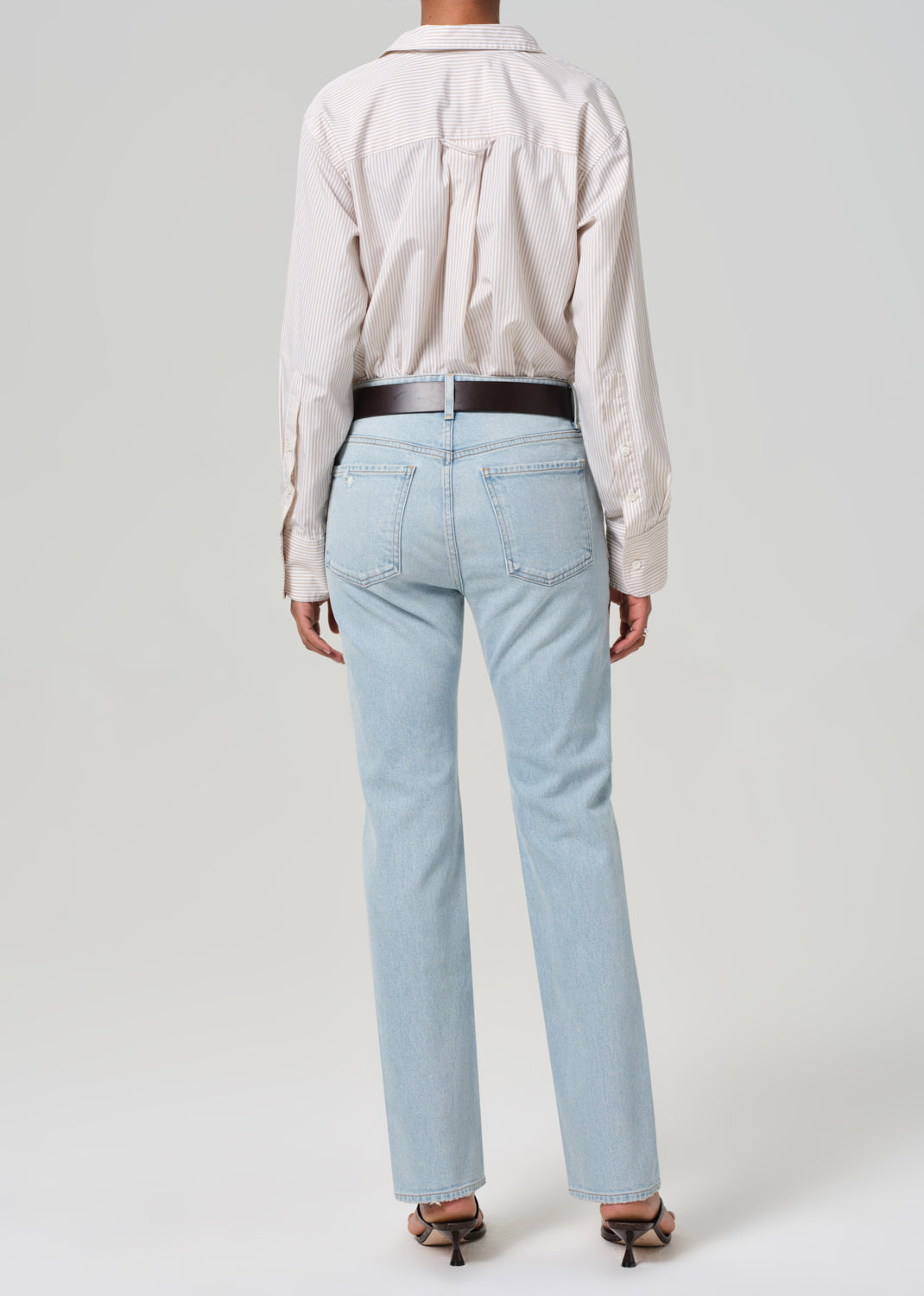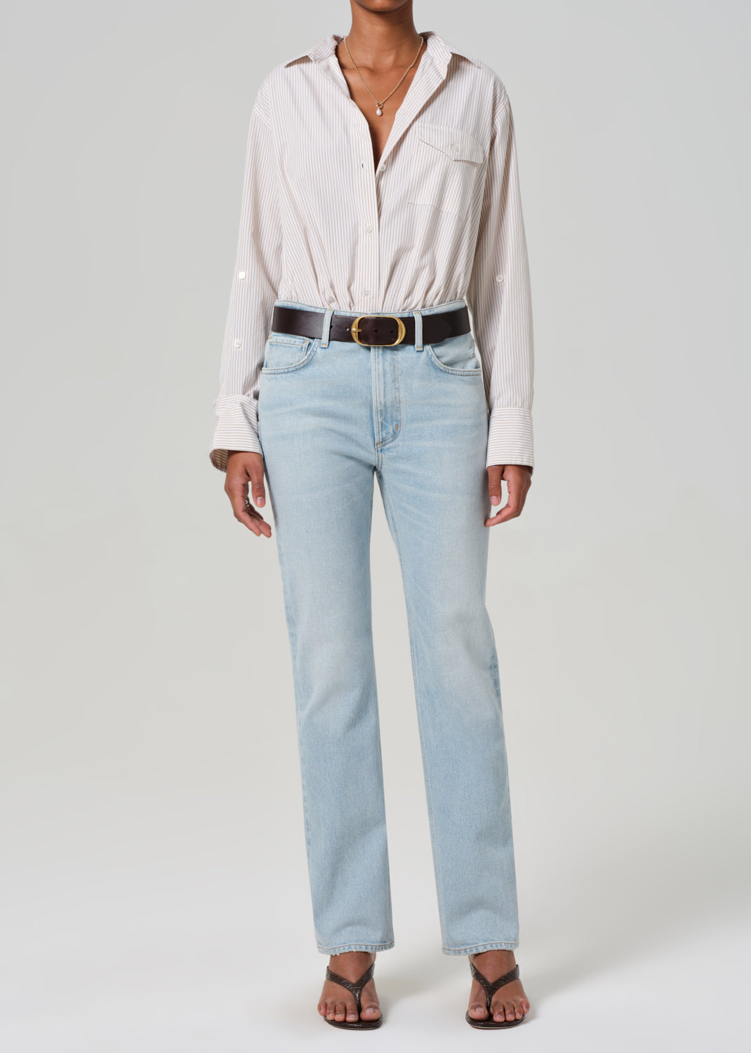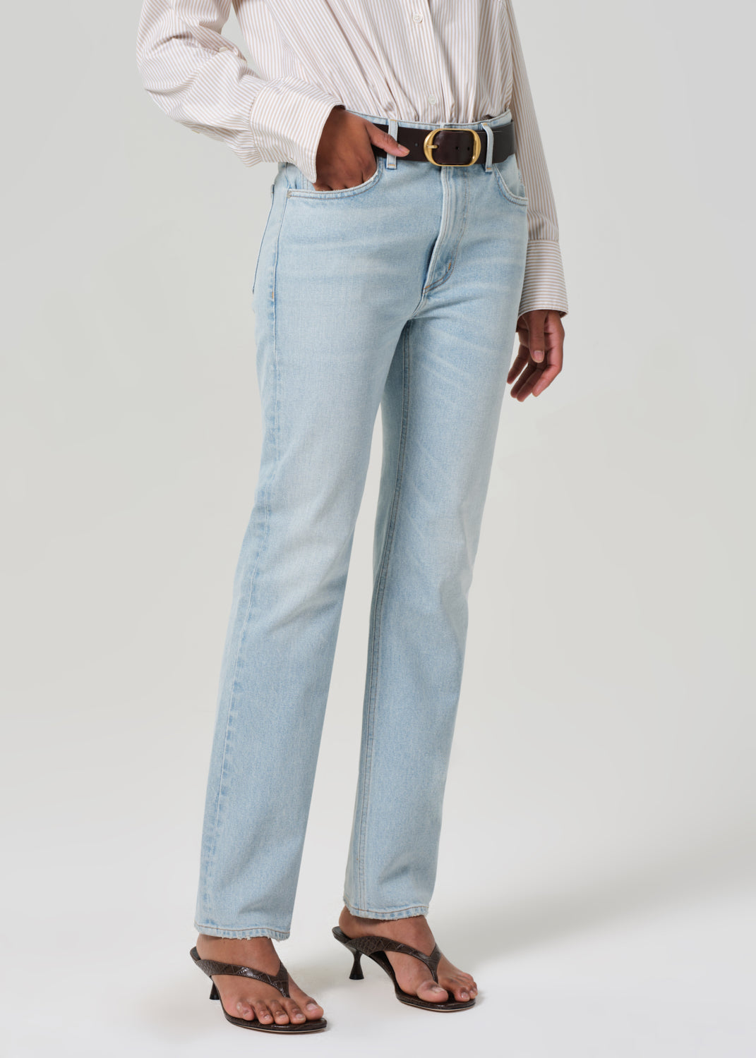 A refined take on the everyday straight leg, the ‘Zurie’ is cut from comfort stretch denim with a soft, flexible feel. The high-rise silhouette offers structure without stiffness, finished in a light vintage-inspired wash with gentle fading and whiskering. Style it with everything from tailored shirting to easy knits.
